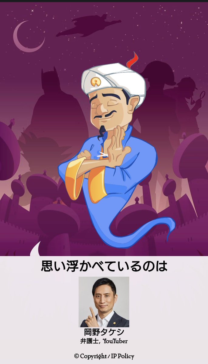 アキネーターは岡野武志氏(@takeshibengo)を当てました! https://t.co/ovQU8KvHi9