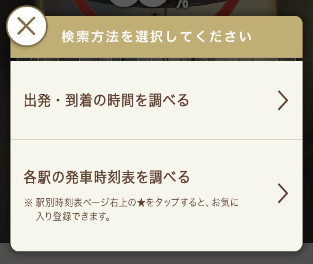 「出発・到着の時間を調べる」から飛んで